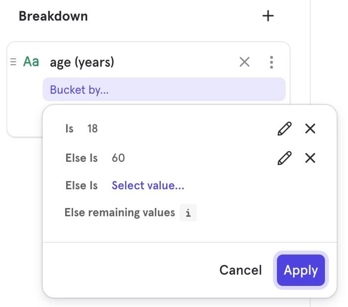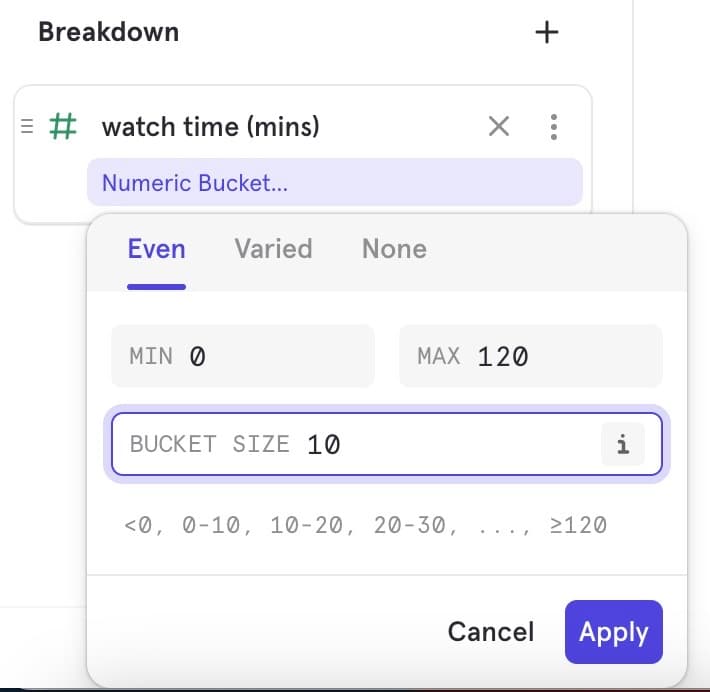Custom buckets let you group existing properties into meaningful segments on the fly. This is focused on enabling every person to answer common segmentation questions easily, quickly, and in a low-friction way.